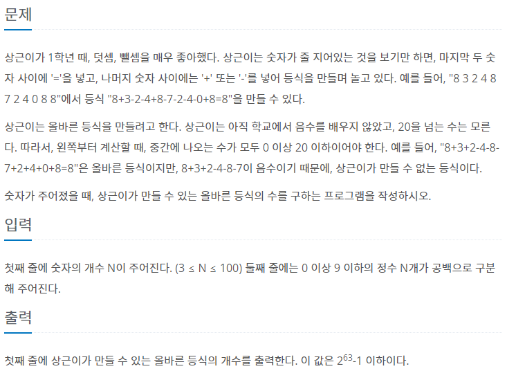 처음부터 연산 기호가 들어가야 할 때 + 또는 - 연산을 진행해 그 값을 DP 리스트에 집어넣었다.